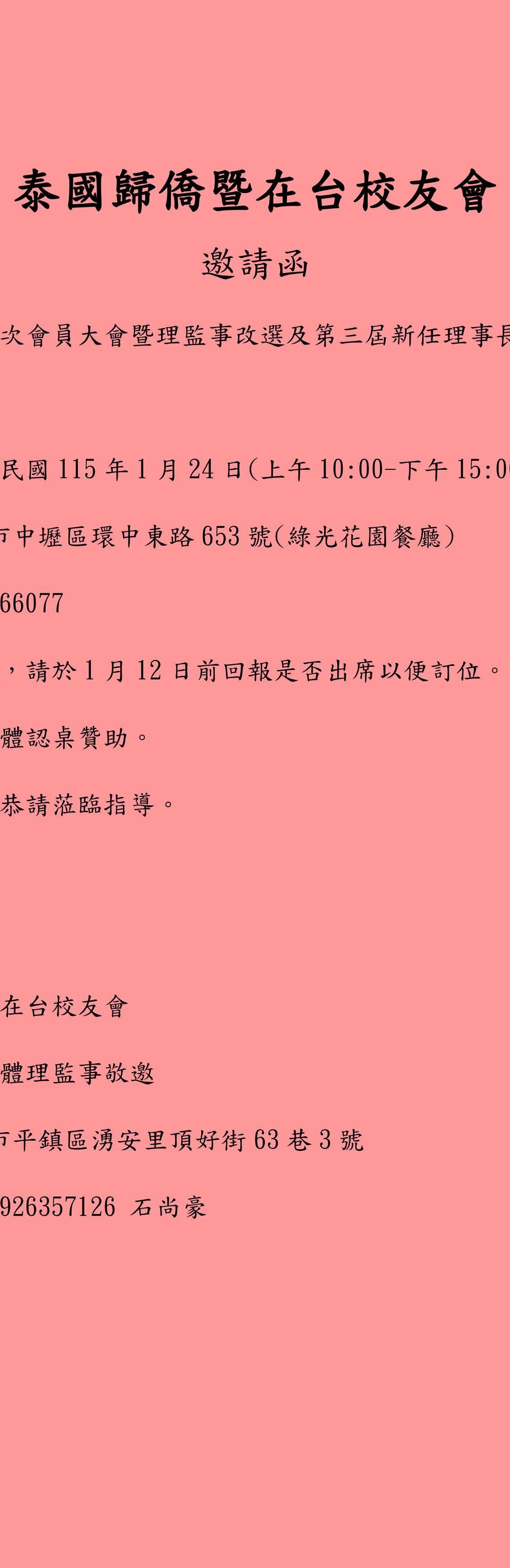 1150124 泰國歸僑暨在台校友會 第二屆第三次會員大會