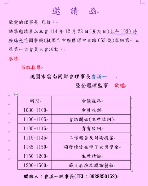 1141228 桃園市雲南省同鄉會第十五屆第一次會員大會
