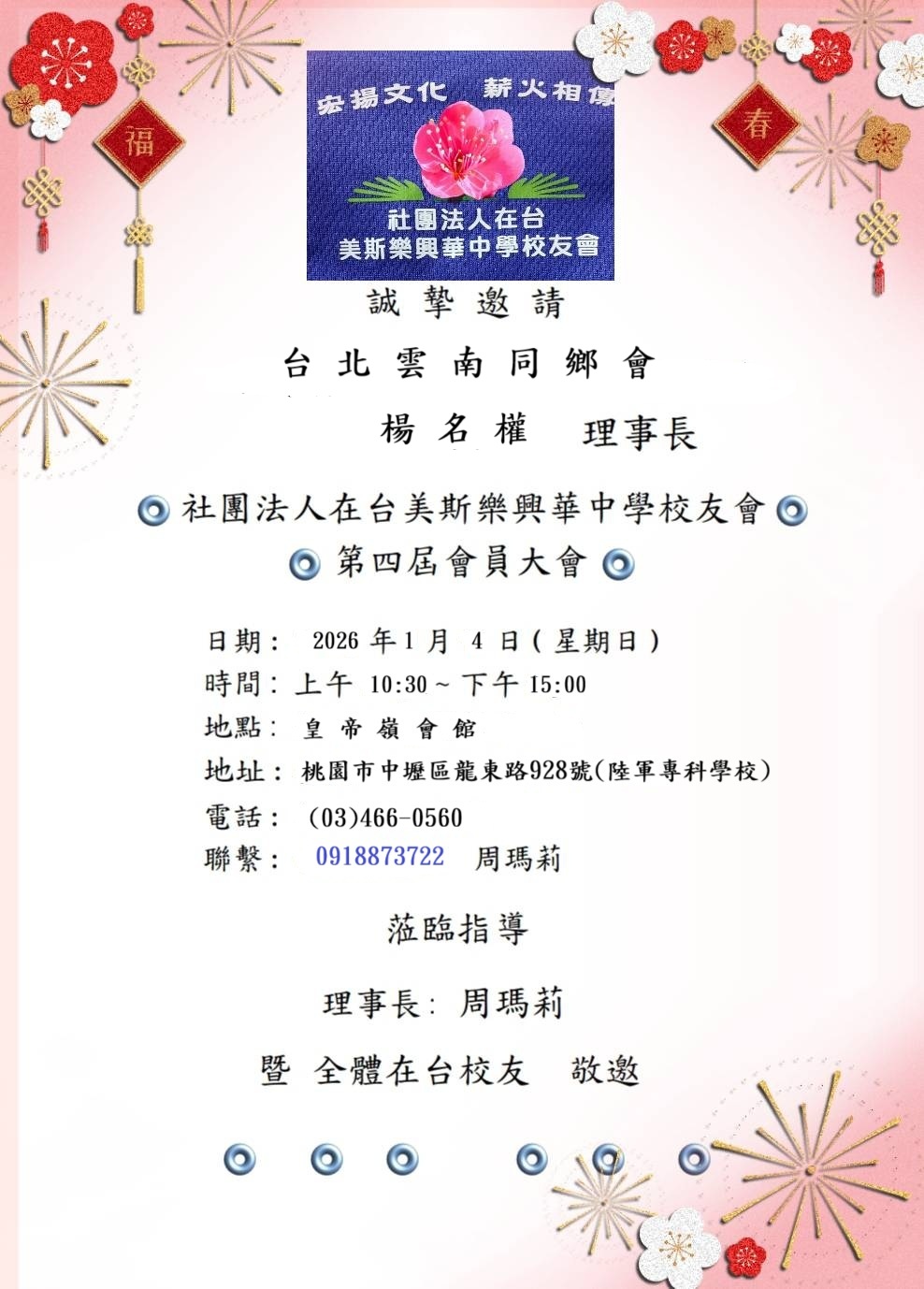 1150104 社團法人在台美斯樂興華中學校友會 第四屆會員大會