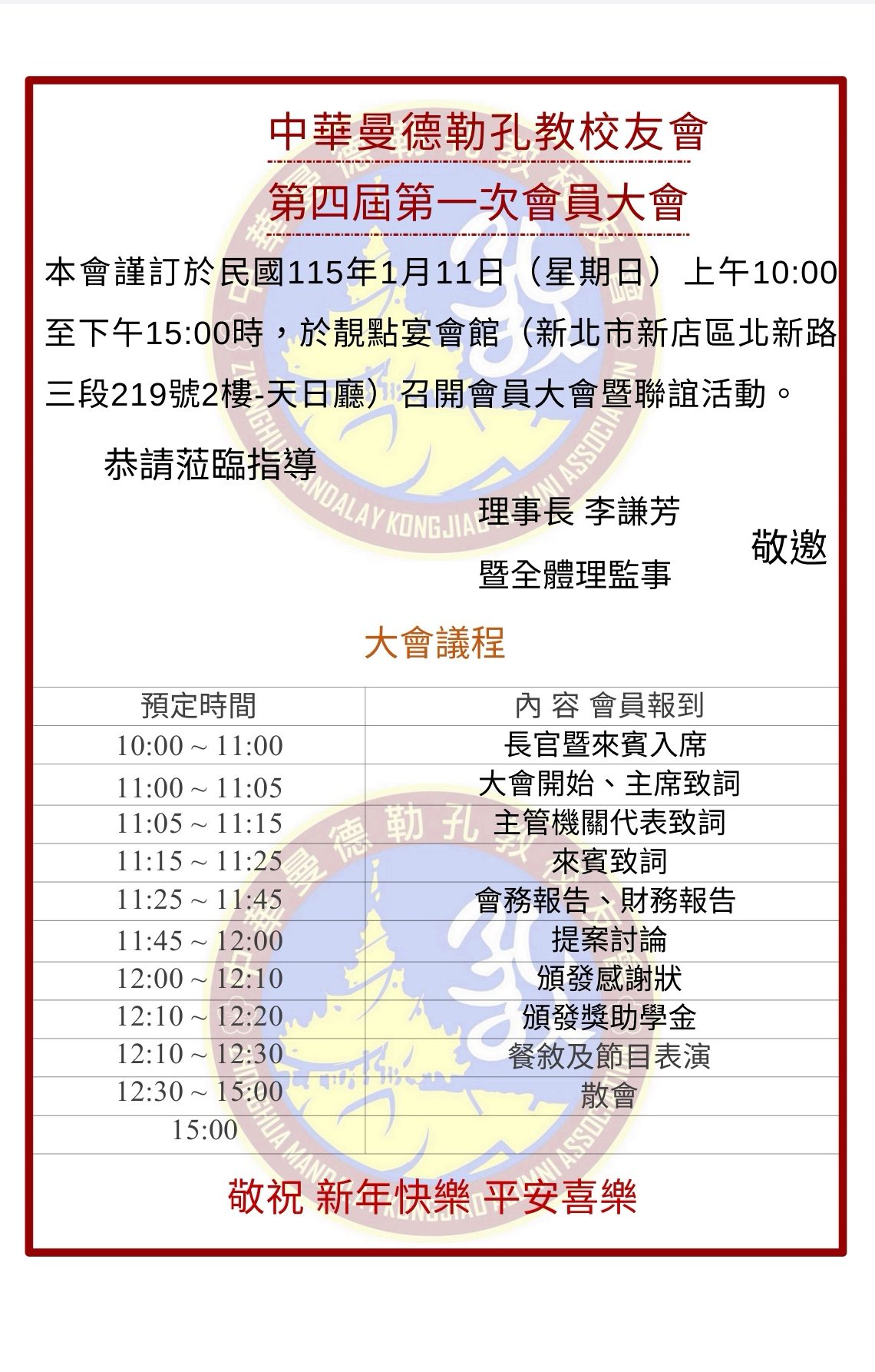 1150111 中華曼德勒孔教校友會 第四屆第一次會員大