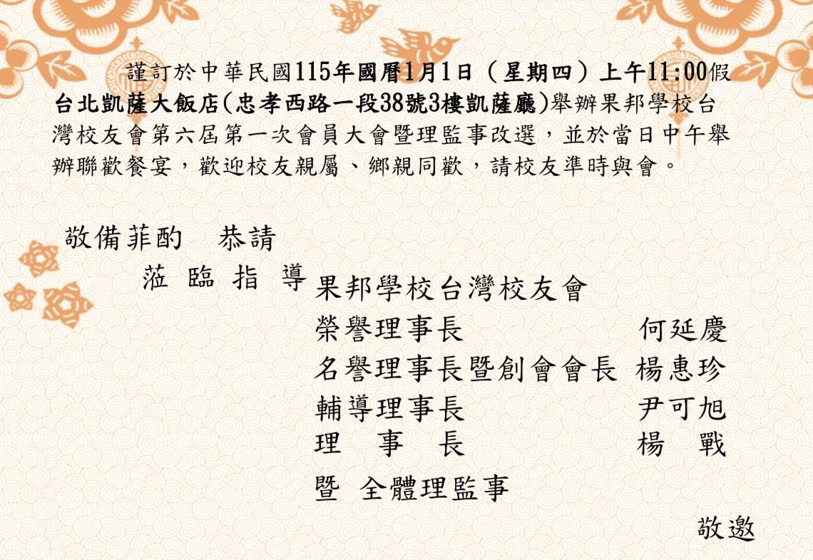 1150101 果幫學校台灣校友會 第六屆第一次 會員大會