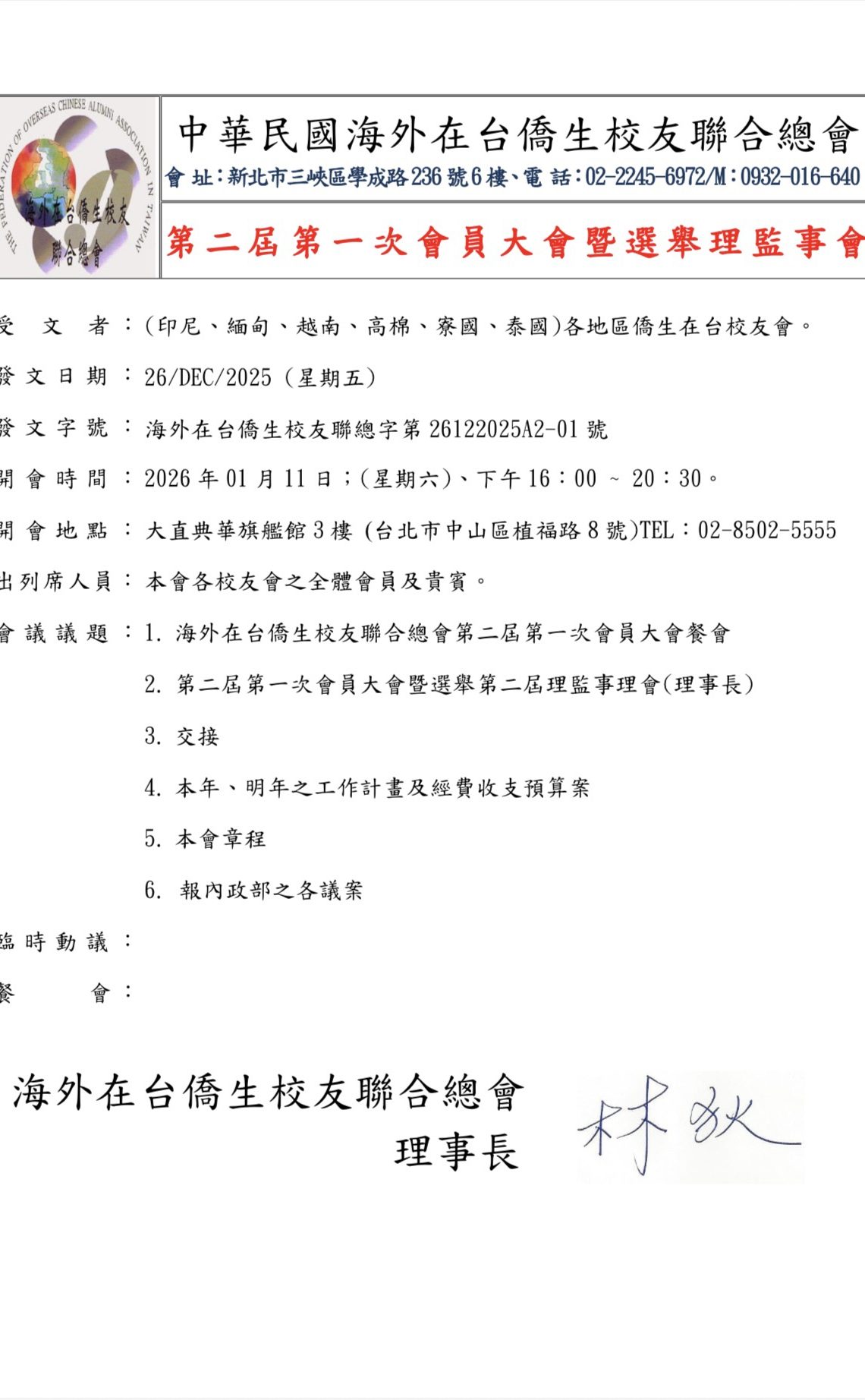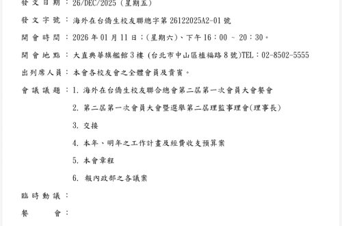 1150111 中華民國海外在台橋生校友聯合總會 第二屆第一次會員大會